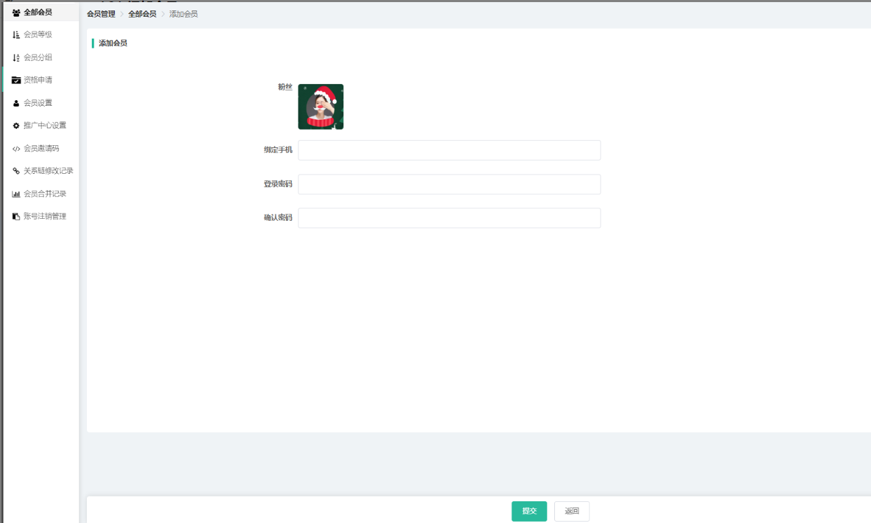添加手机号会员,输入登录密码,可用于登录wap端访问商城.