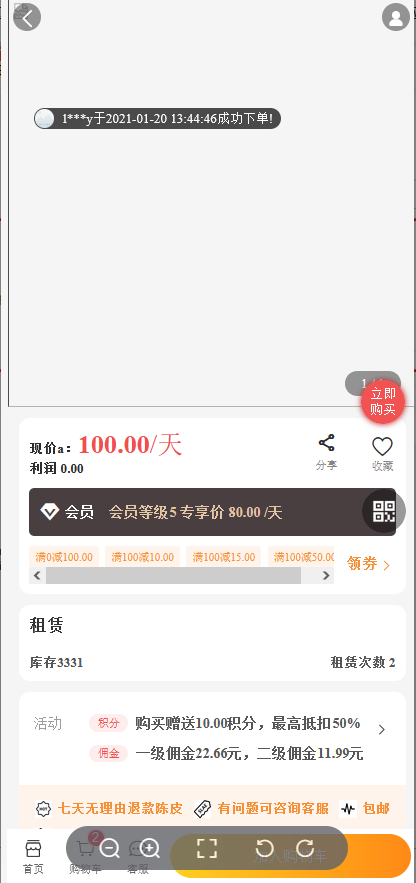 起租金额:如果总租金小于设置的起租金额,则无法下单。